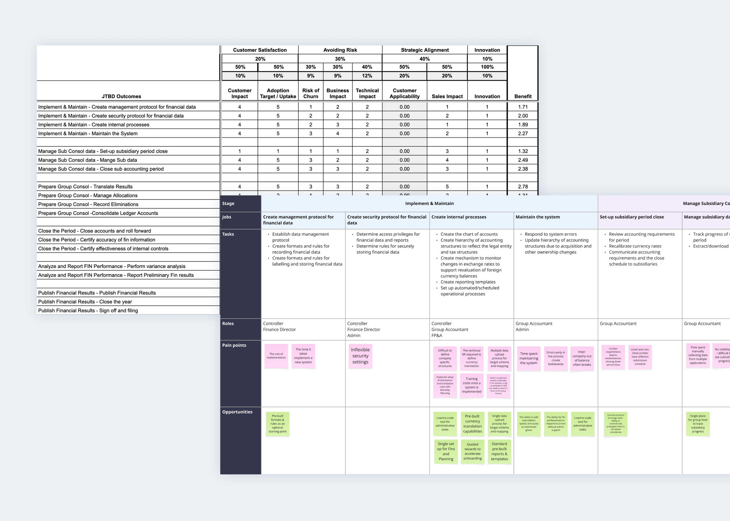 Jobs-to-be-Done prioritisation matrix and process map